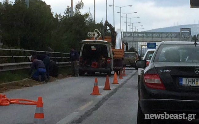 Αποτέλεσμα, να έχει δημιουργηθεί κυκλοφοριακό κομφούζιο, καθώς όλη η κυκλοφοριακή ροή της λεωφόρου διοχετεύεται στα δύο εναπομείναντα ρεύματα.