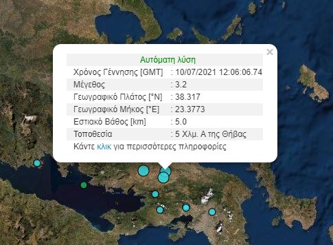 Σύμφωνα με το Γεωδυναμικό Ινστιτούτο, η δόνηση είχε μέγεθος 3,2 Ρίχτερ, με το επίκεντρο να είναι 5 χλμ. ανατολικά της Θήβας.