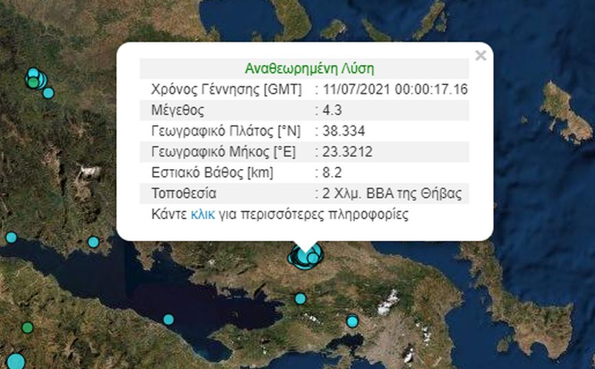 Ισχυρός σεισμός 4,3 βαθμών της κλίμακας Ρίχτερ σημειώθηκε στη Θήβα τα ξημερώματα της Κυριακής.