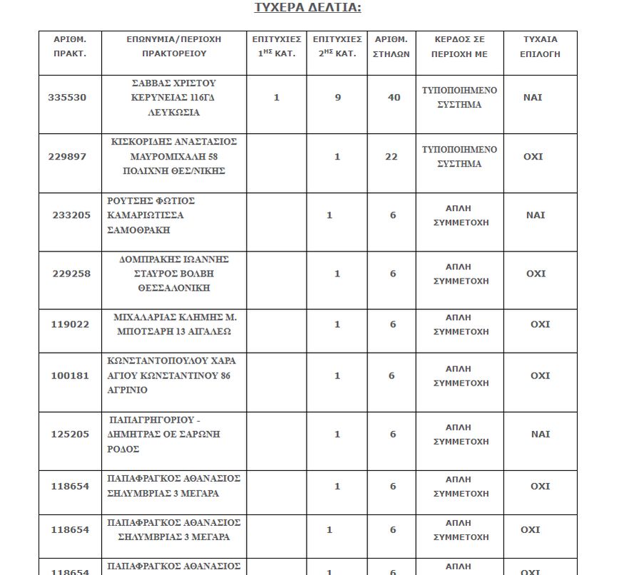 Παράλληλα άλλοι 9 παίχτες έγιναν πλουσιότεροι κατά 8.611,29 καθώς βρήκαν τους 5 τυχερούς αριθμούς και «έγραψαν» επιτυχία στη δεύτερη κατηγορία.