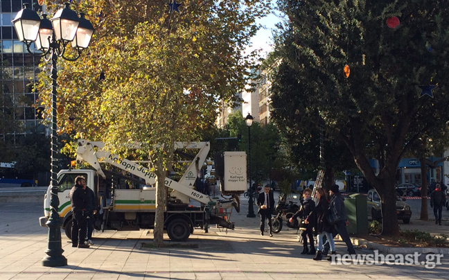 Υπάλληλοι του δήμου Αθηναίων έχουν πιάσει δουλειά και στολίδια και λαμπιόνια παίρνουν τη θέση τους σε δέντρα και κεντρικά σημεία της πόλης.