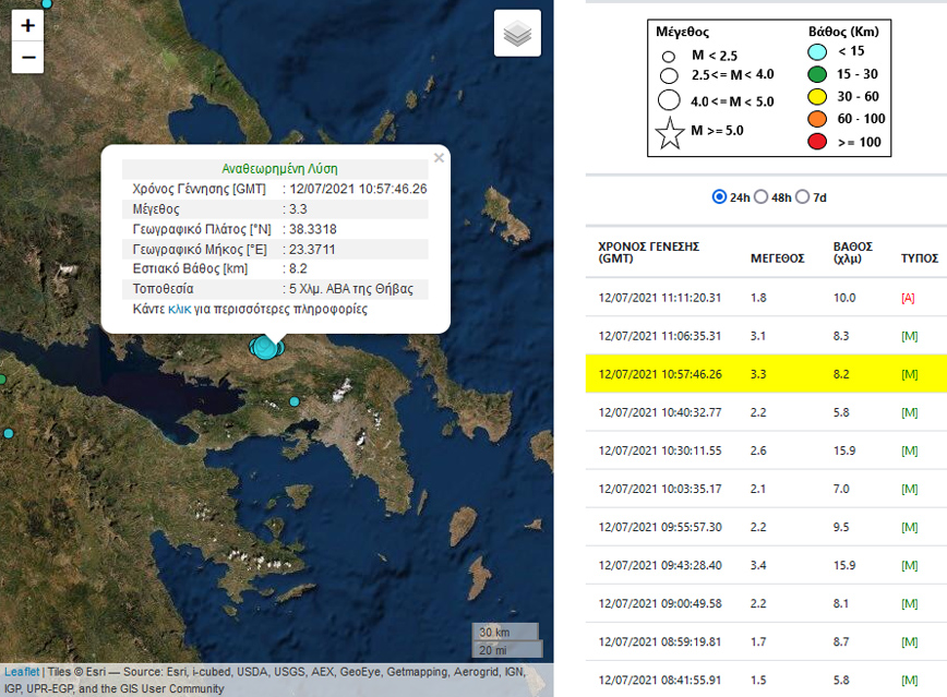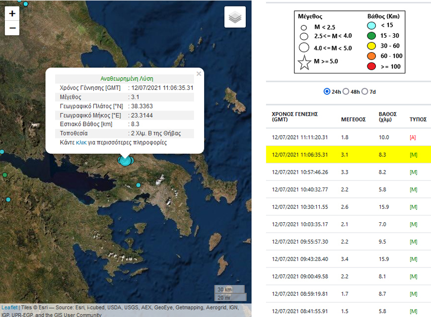 Σε ρυθμούς Ρίχτερ «χορεύει» τα τελευταία 24ωρα η Θήβα. Το μεσημέρι της Δευτέρας (12/7) σημειώθηκαν δύο νέοι σεισμοί μεγέθους 3,3 βαθμών και 3,1 βαθμών της κλίμακας Ρίχτερ.
