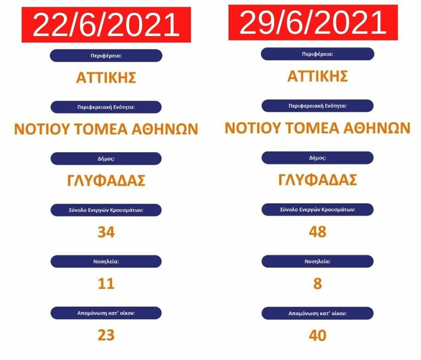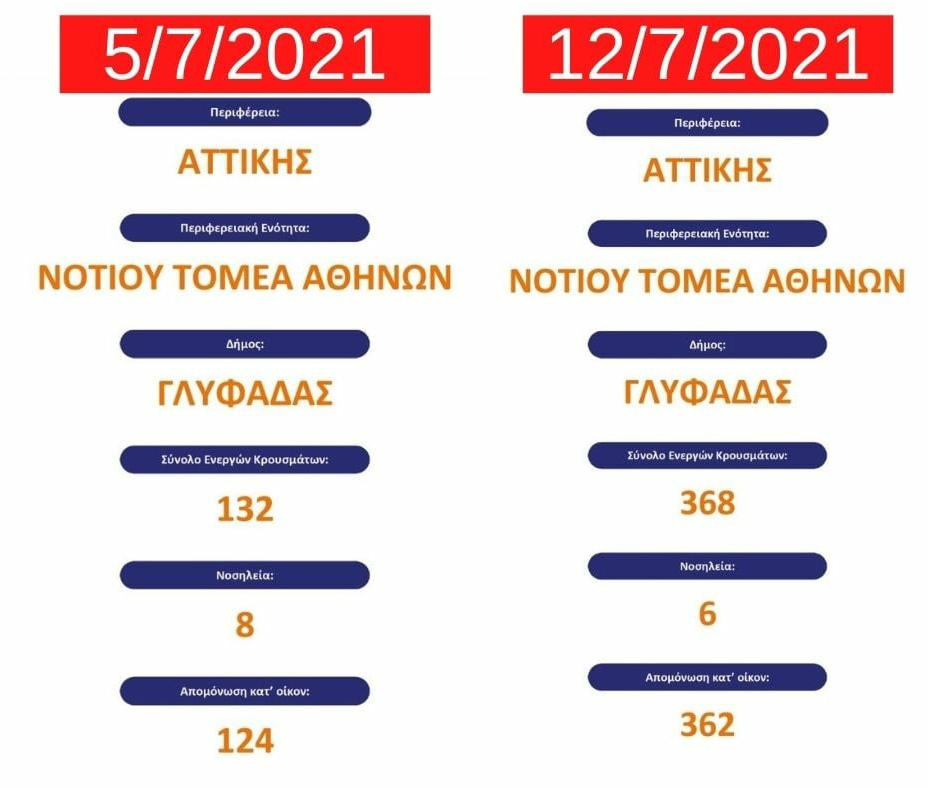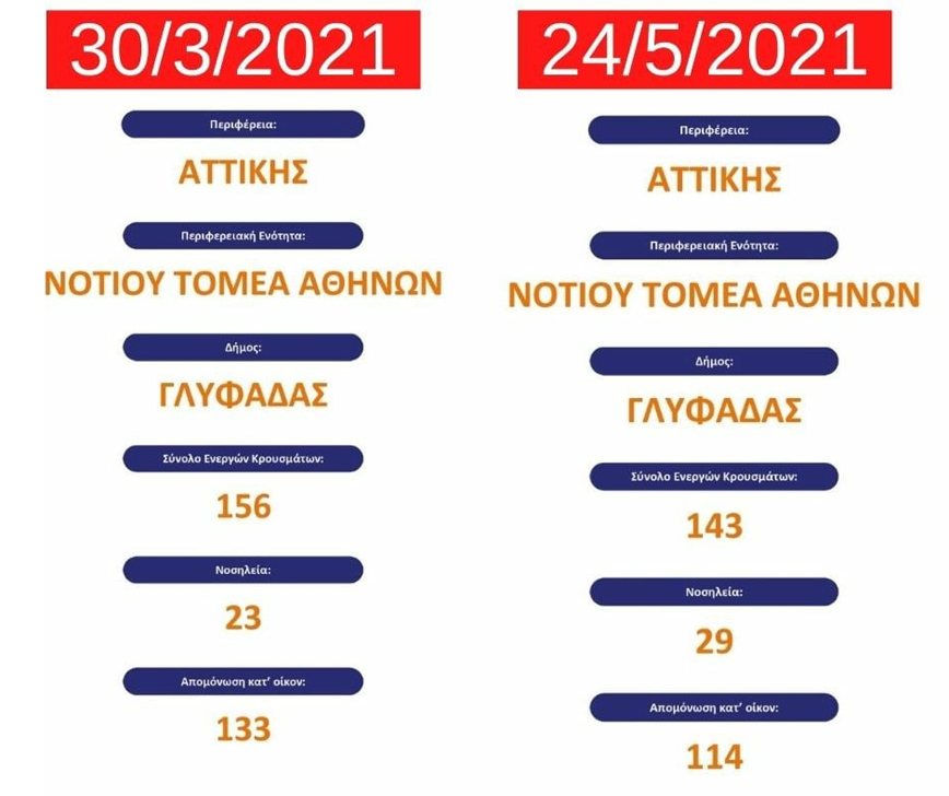 «Δείτε στους πίνακες την ραγδαία αύξηση των κρουσμάτων! Ακόμα και όταν η εξάπλωση της πανδημίας στη χώρα ήταν στο απόγειό της, σε καμία στιγμή δεν είχαμε ξεπεράσει τα 180 ενεργά κρούσματα στην πόλη μας. Σήμερα τα ενεργά κρούσματα στη Γλυφάδα είναι 368, με μεγάλη διασπορά ιδίως στους νέους !