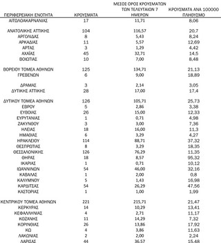 Η γεωγραφική κατανομή στην υπόλοιπη Ελλάδα