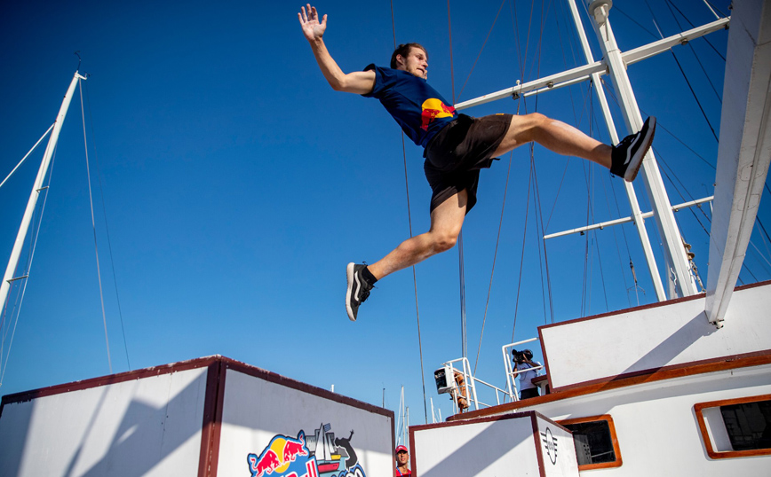 Το Red Bull Art of Motion έλαβε χώρα σε 2 ιστιοφόρα για πρώτη φορά στα χρονικά και είδε αθλητές από όλο τον κόσμο να δίνουν μάχη εν πλώ, στο πανέμορφο Μικρολίμανο με την συνδιοργάνωση του Ο.Π.Α.Ν του Δήμου Πειραιά.