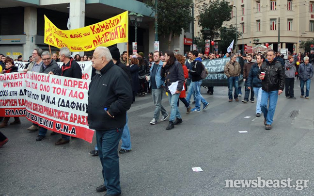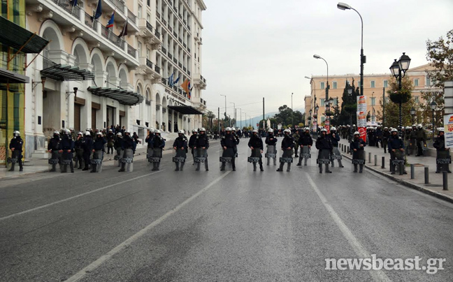 Το κέντρο της Αθήνας είναι κλειστό λόγω των διαδηλώσεων. Στη Βουλή είχε φτάσει νωρίτερα η πορεία του ΠΑΜΕ, με αφετηρία την πλατεία Ομονοίας.
