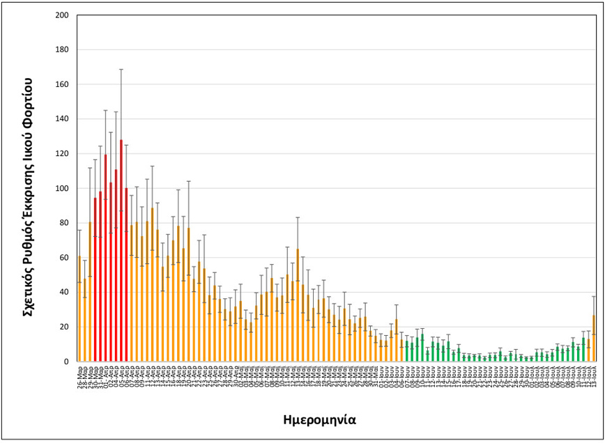 - Αυξημένη (78%) σε σχέση με τη μέση τιμή των δύο αμέσως προηγούμενων μετρήσεων, του Σαββάτου 10/07 και της Κυριακής 11/07.