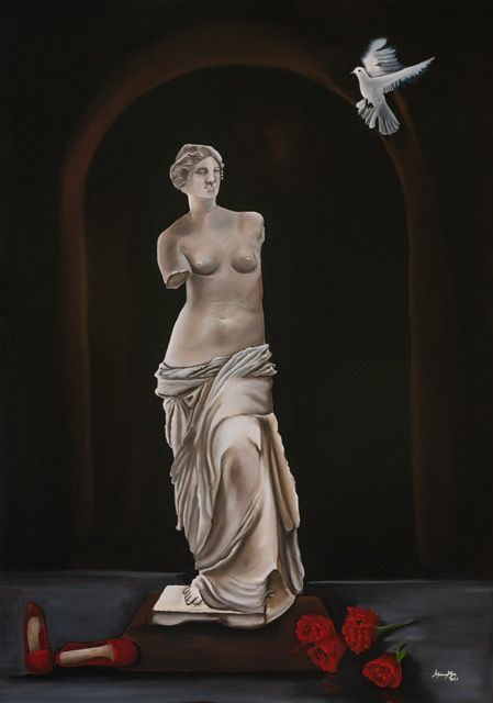«Συμβολίζει την αναβλύζουσα σαγήνη της αιώνιας θηλυκότητας. Επίσης προκαλεί το ενδιαφέρον το πέπλο μυστηρίου, που την περιβάλλει, της προσδίδει μεγαλείο. Εξάλλου, το ίδιο δεν συμβαίνει με τις περισσότερες σπουδαίες γυναίκες αυτού του κόσμου;» παρατηρεί η ζωγράφος η οποία προσέγγισε την Αφροδίτη της Μήλου με την γυναικεία της υπόσταση, μιας και είναι, όπως υπογραμμίζει, η ενσάρκωση της ομορφιάς και της ακατανίκητης γοητείας, απαράμιλλη και διαχρονική στους αιώνες.