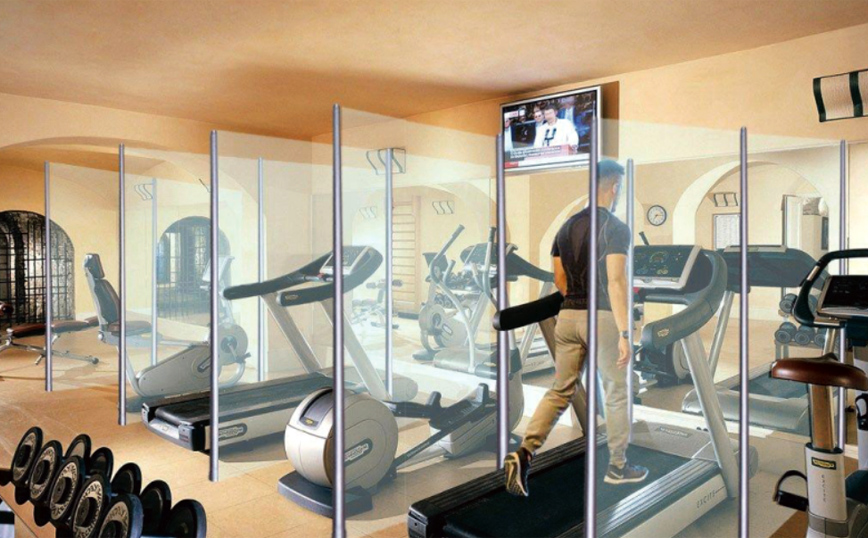 • Απόσταση τουλάχιστον δύο (2) μέτρων ανάμεσα στα όργανα αερόβιας άσκησης (π.χ. διάδρομοι, ποδήλατα, ελλειπτικά) ή κατασκευή ακρυλικών υαλοπινάκων, που θα βρίσκεται έμπροσθεν των οργάνων και καθ’ όλο το μήκος αυτών ιδανικά και με επάνω καλυπτικό τμήμα (οροφή), το οποίο θα καθαρίζεται με αλκοολούχο αντισηπτικό διάλυμα πριν την χρήση του από τον επόμενο αθλούμενο.