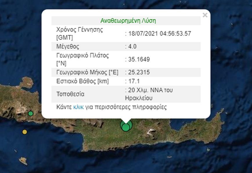 Σύμφωνα με το Γεωδυναμικό Ινστιτούτο, η δόνηση μεγέθους 4 Ρίχτερ είχε επίκεντρο 21 χλμ νότια του Ηρακλείου και εστιακό βάθος 17,1 χλμ.