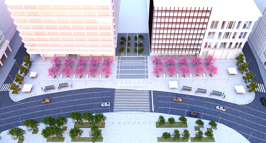 - Η ανάπλαση προβλέπει 28 νέα μεγάλα δέντρα που θα συμβάλουν στο μικροκλίμα της πλατείας, τη σκίαση, την ελκυστικότητά της νέας πλατείας, την φιλικότητα προς τους επισκέπτες.