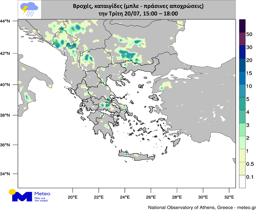 Όπως διακρίνεται στου χάρτες που ακολουθούν και παρουσιάζουν τον αθροιστικό υετό με μπλε-πράσινες αποχρώσεις τα διαστήματα 12:00 – 15:00 και 15:00 – 18:00, μεταξύ των περιοχών που θα επηρεαστούν περιλαμβάνονται η Θεσσαλία, η Ήπειρος, η Μακεδονία και η Ανατολική Στερεά Ελλάδα.