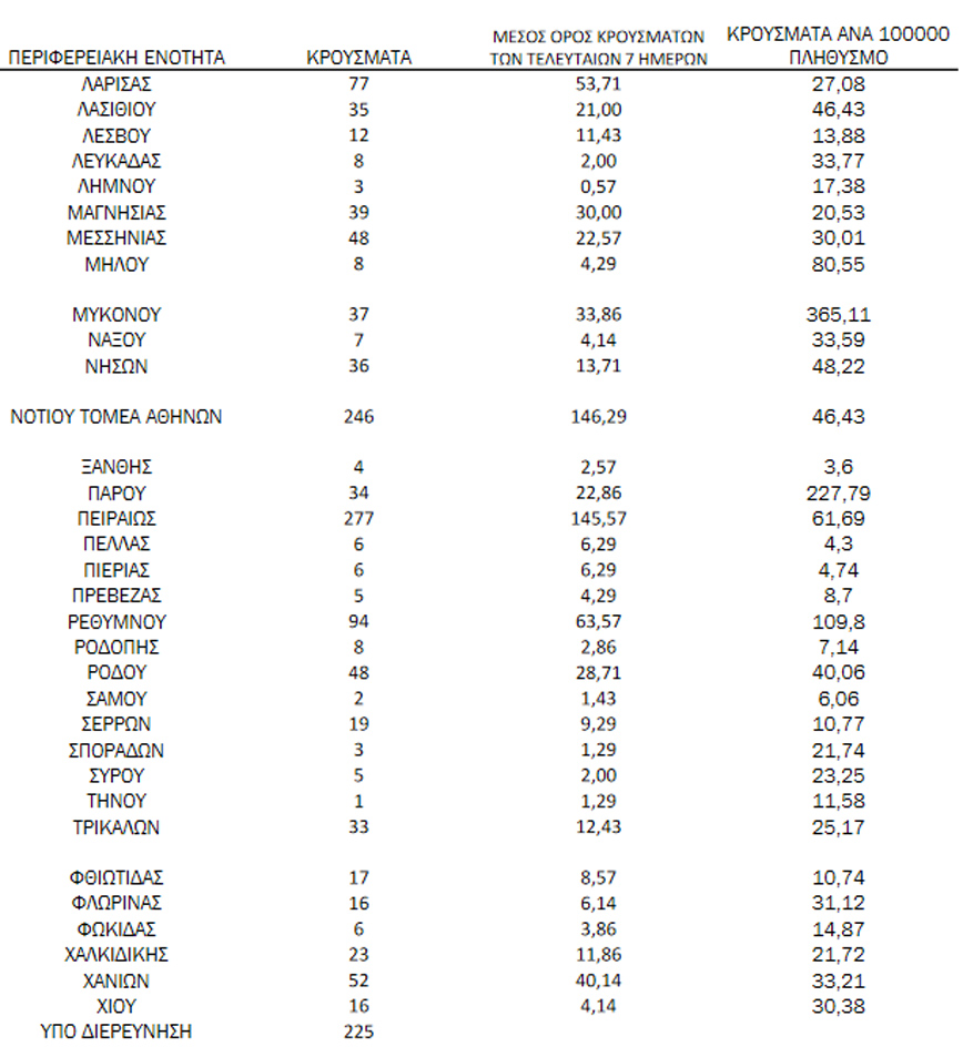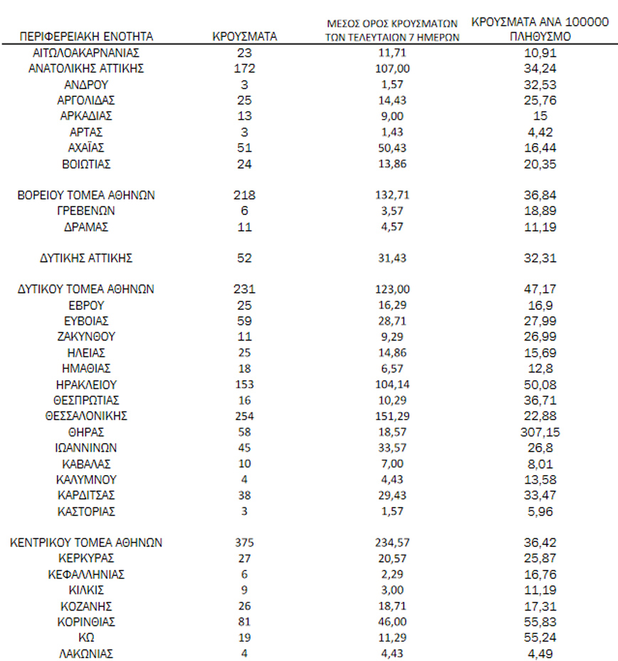 - 23 κρούσματα στην Π.Ε. Αιτωλοακαρνανίας