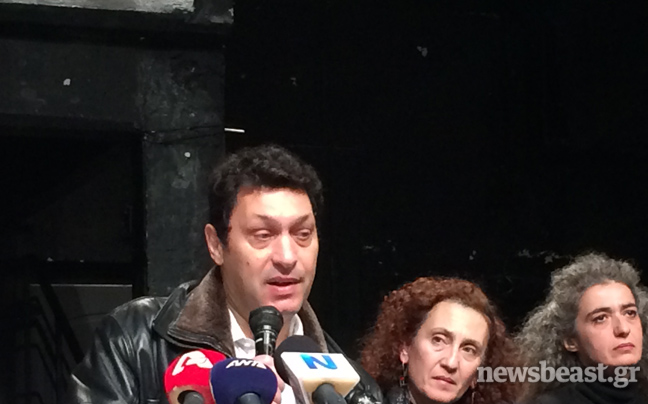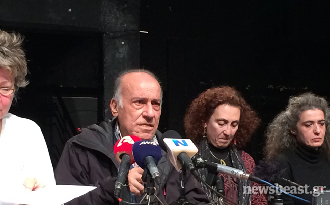 Ο Γιώργος Ρωμανός, στη συνέντευξη Τύπου που έδωσε στο Ελεύθερο Αυτοδιαχειριζόμενο Θέατρο Εμπρός, διάβασε ένα κείμενο στήριξης του γιου του και του αγώνα που δίνει.