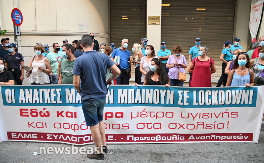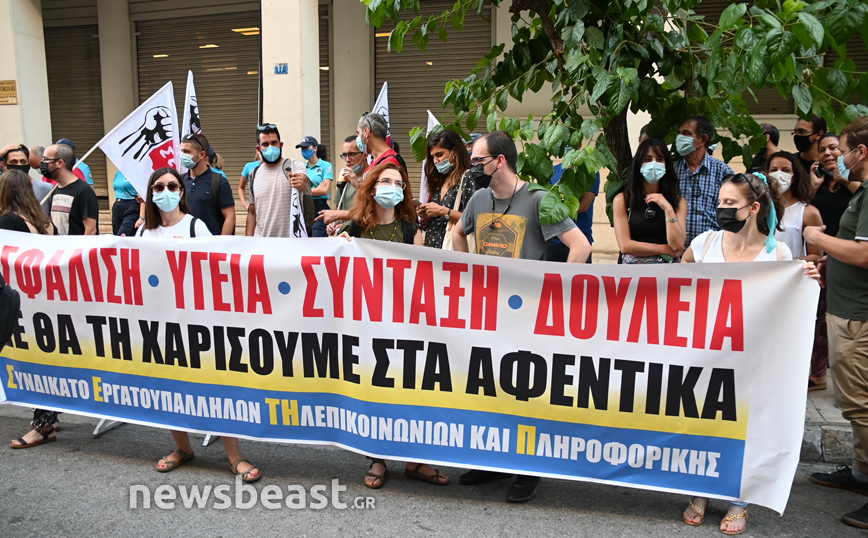 Συγκέντρωση διαδηλωτών για τα μέτρα στον τομέα της υγείας και την ασφάλεια στους χώρους δουλειάς πραγματοποιείται το απόγευμα της Τρίτης (20/7) έξω από το υπουργείο Υγείας.