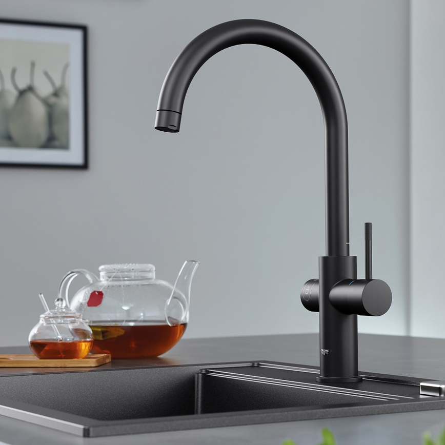 Το σύστημα νερού της GROHE σε “Matt Black” τραβά την προσοχή στην κουζίνα