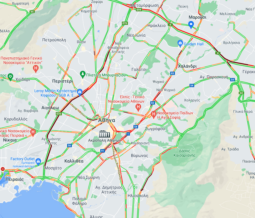 Κίνηση τώρα: Δείτε τον χάρτη με την εικόνα που επικρατεί αυτή την ώρα