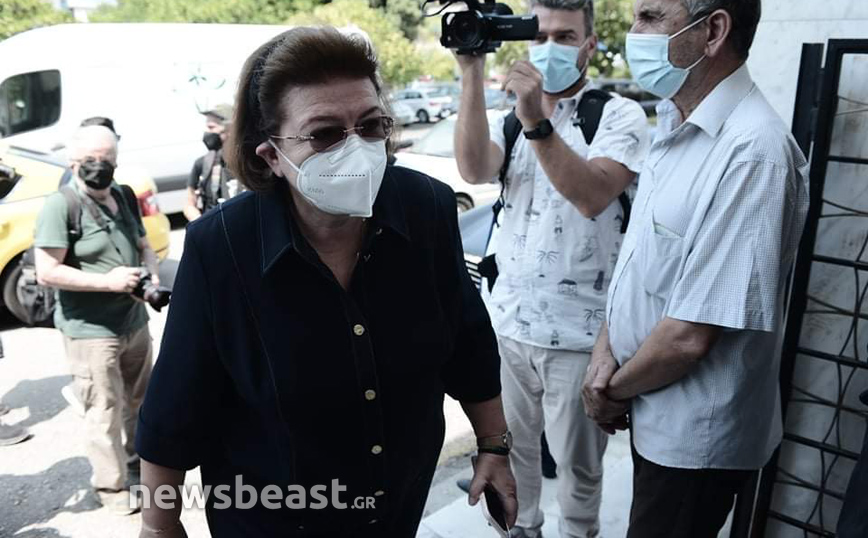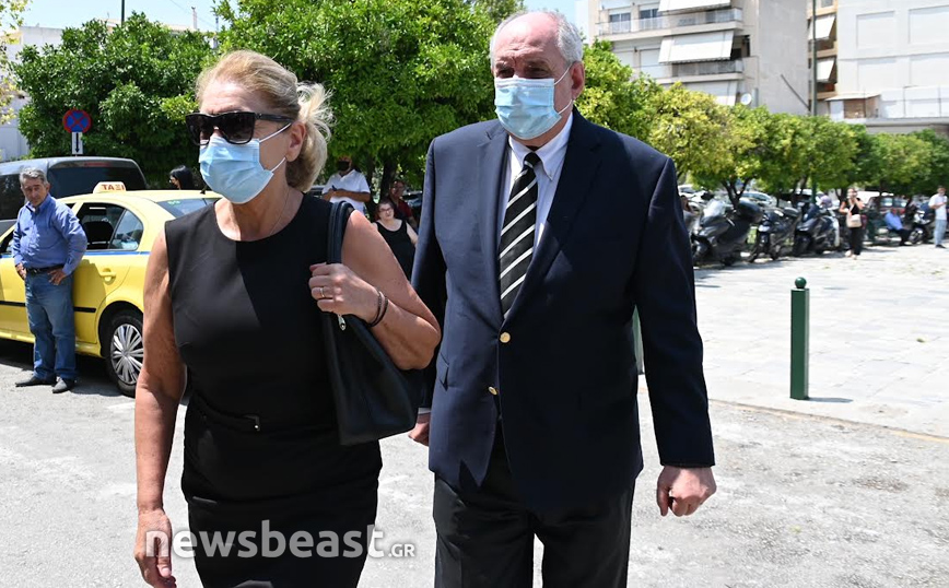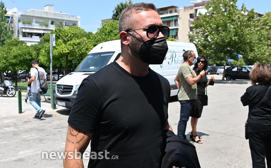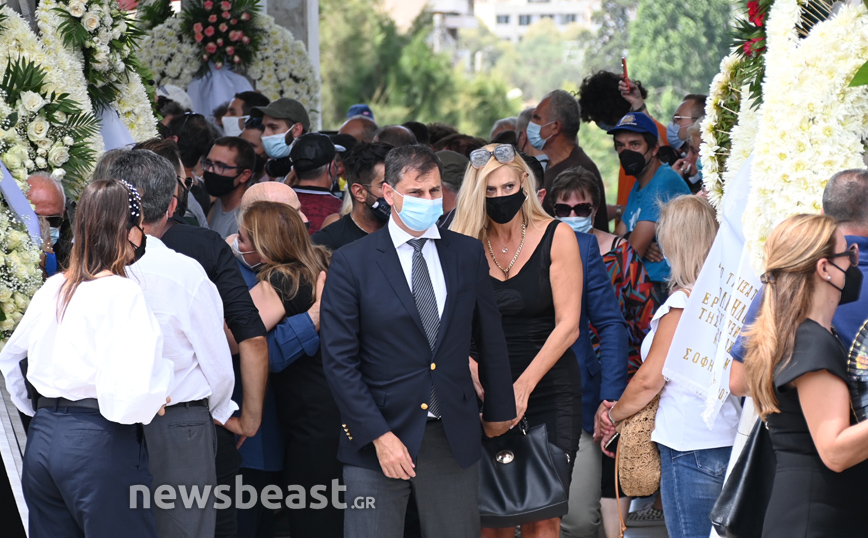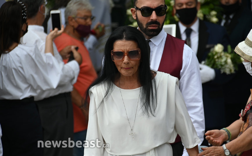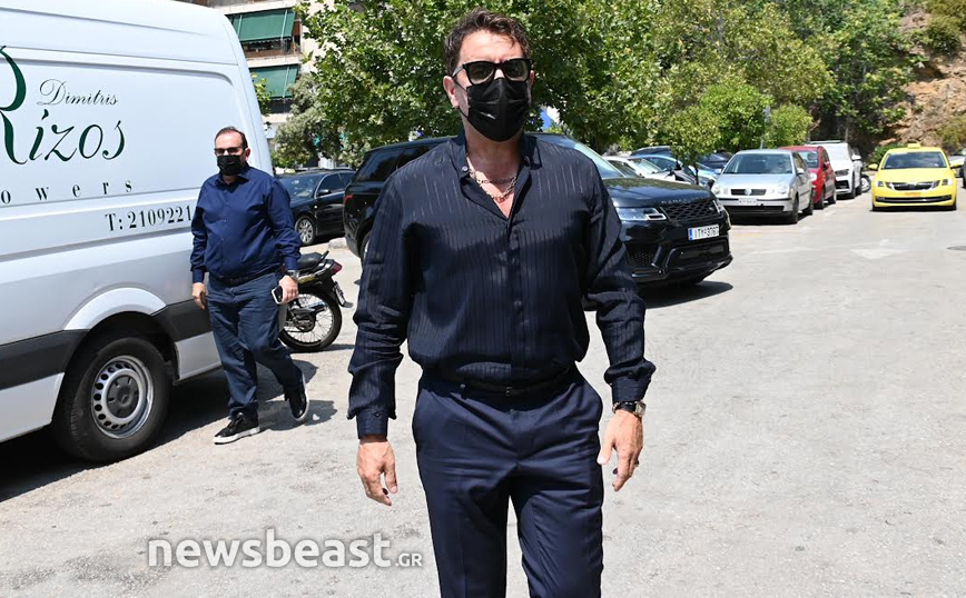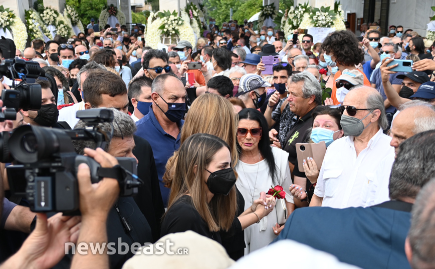 Η σύζυγος και η κόρη του τραγουδιστή συγκινημένες και κρατώντας η μία την άλλη μπήκαν στο κοιμητήριο χωρίς να προβούν σε δηλώσεις.