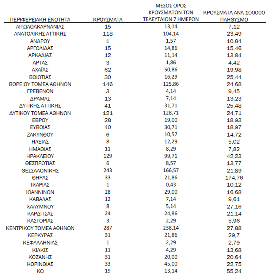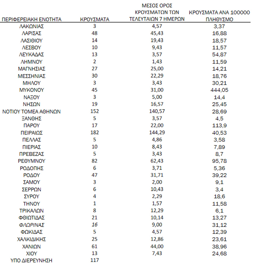 Παράλληλα η Θεσσαλονίκη έχει 243 νέα κρούσματα κορονοϊού και η Κρήτη 286 (Ηράκλειο 129, Χανιά 61, Ρέθυμνο 82, Λασίθι 14).
