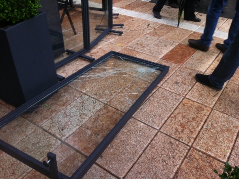 Από τα επεισόδια προκλήθηκαν ζημιές σε προθήκες από καταστήματα.