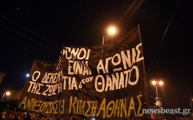 Σε εξέλιξη βρίσκεται στο κέντρο της Αθήνας η πορεία για την μαύρη επέτειο δολοφονίας του Αλέξη Γρηγορόπουλου.
