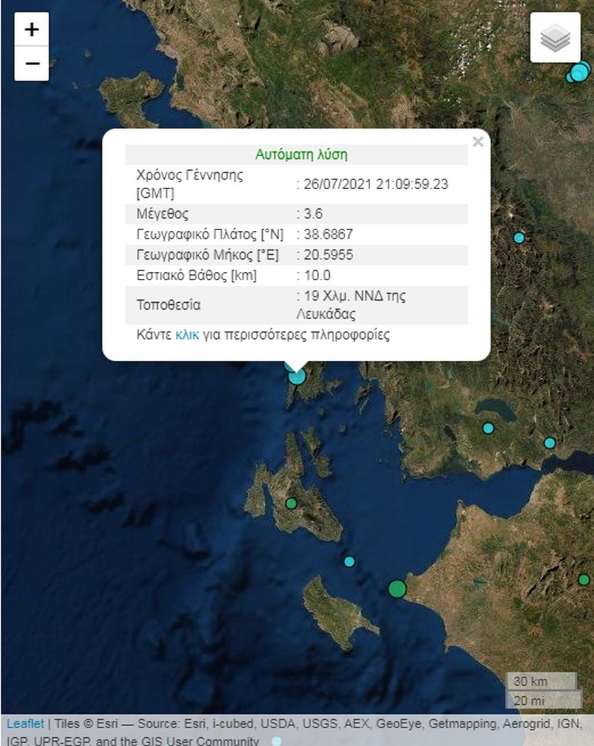 Ο σεισμός είχε εστιακό βάθος στα 10 χιλιόμετρα ενώ το επίκεντρο εστιάζεται στα 19 χιλιόμετρα νότια νοτιοδυτικά της Λευκάδας.