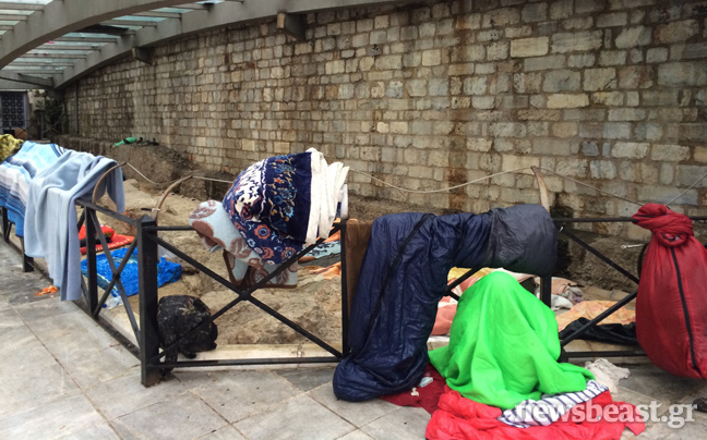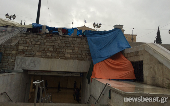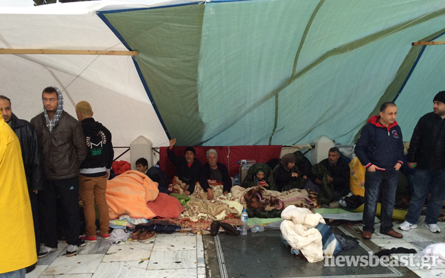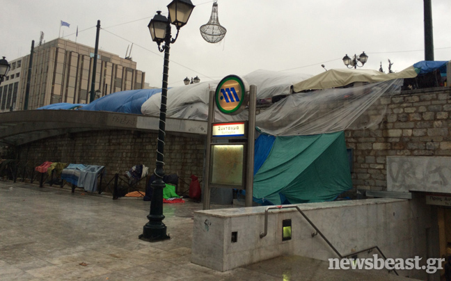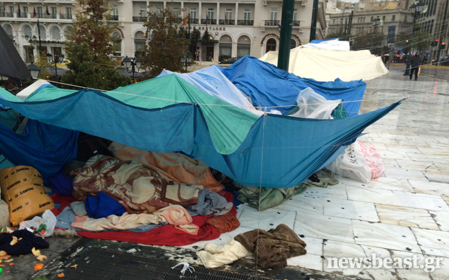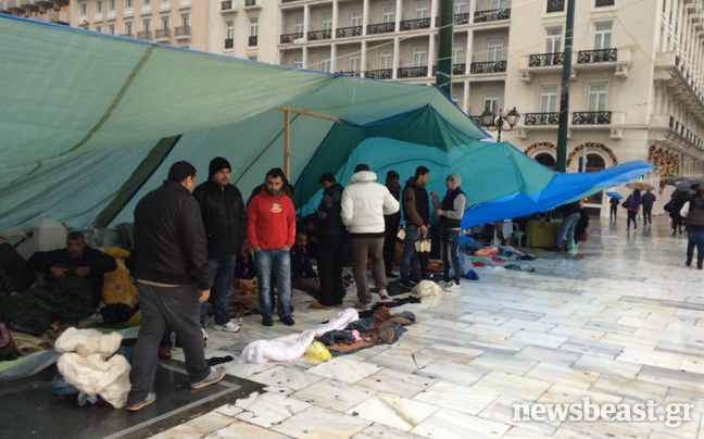 Στην πλατεία Συντάγματος, παρά τις δύσκολες συνθήκες, παραμένουν από τις 19 Νοεμβρίου οι σύροι πρόσφυγες.