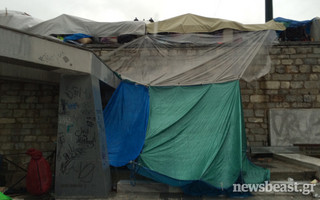 Τυλιγμένοι με κουβέρτες και με τη βοήθεια αυτοσχέδιων τεντών προσπαθούν να προφυλαχθούν από το κρύο και τη βροχή, επιμένοντας στα αιτήματά τους.