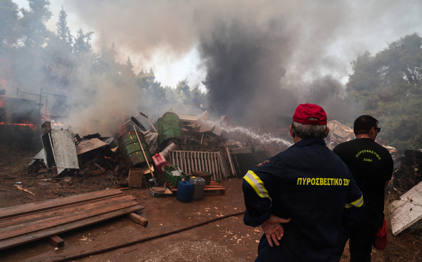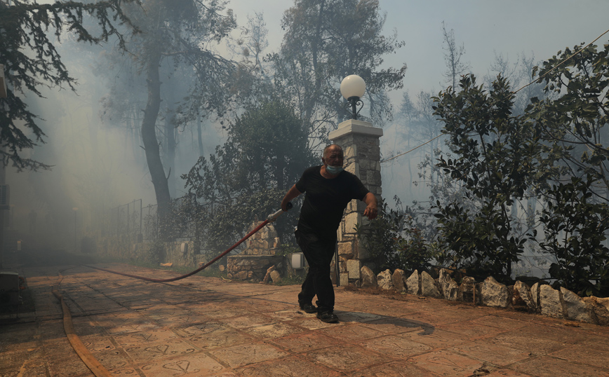 Ο οικισμός «Γαλήνη» έχει εκκενωθεί, με τις φλόγες να μπαίνουν ακόμη και μέσα σε σπίτια στην περιοχή της Ροδόπολης.