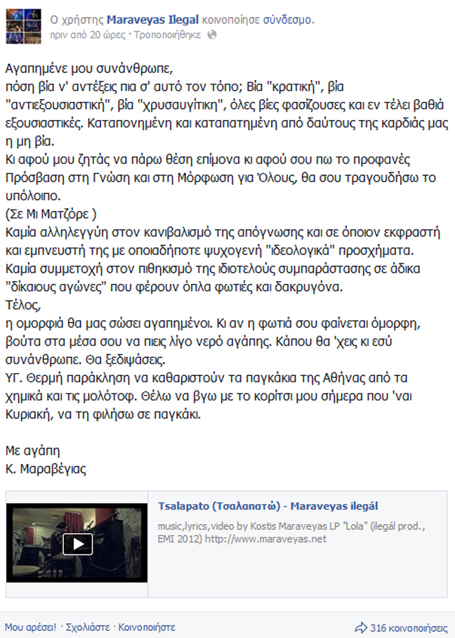 Αναλυτικά η ανάρτηση του Κωστή Μαραβέγια…