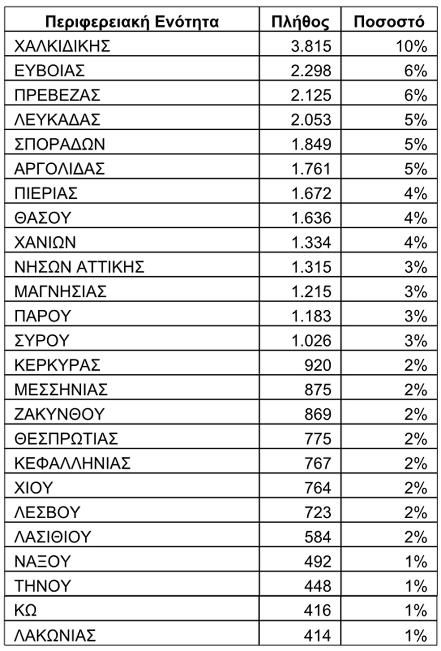 Ενδεικτικά, οι Περιφερειακές Ενότητες με τον μεγαλύτερο αριθμό ενεργοποιημένων επιταγών σε τουριστικά καταλύματα είναι η Χαλκιδική, η Εύβοια, η Πρέβεζα και η Λευκάδα, σύμφωνα με ανακοίνωση του Οργανισμού. Αναλυτικά, η κατανομή έχει ως εξής: