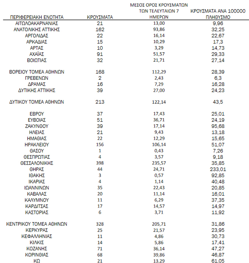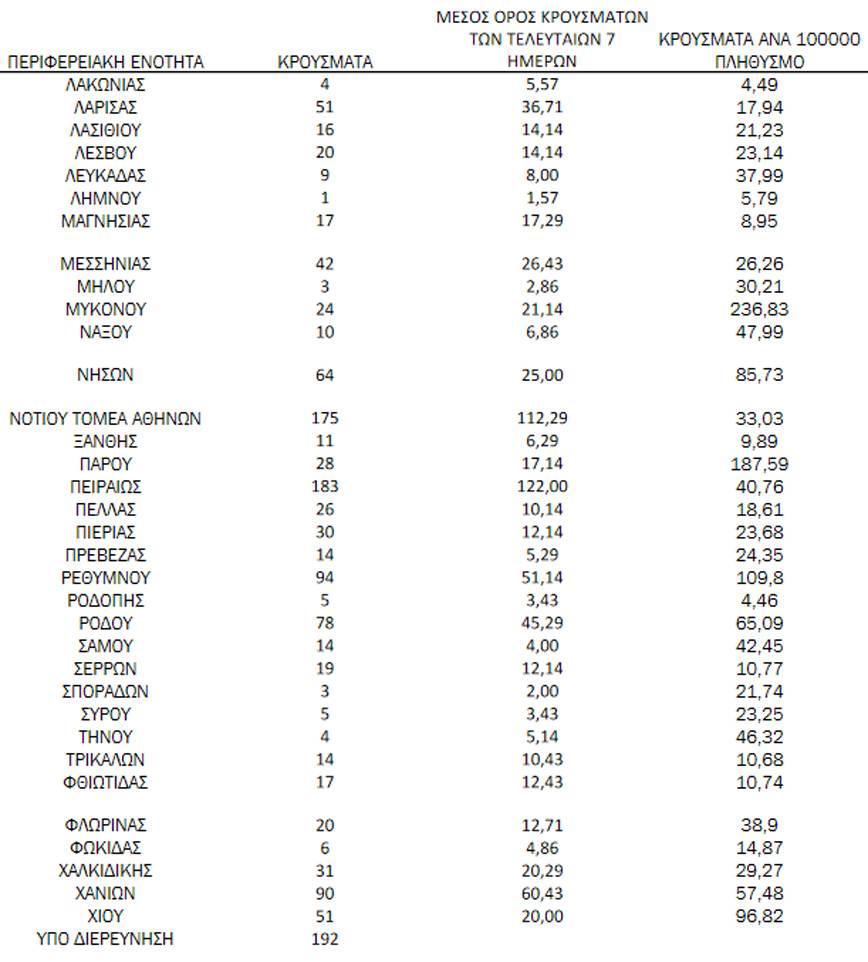 Συγκεκριμένα η Αττική έχει 1.332 νέα κρούσματα κορονοϊού, με το κέντρο της Αθήνας να έχει 328 νέες μολύνσεις covid-19. Την ίδια ώρα η Θεσσαλονίκη έχει 398 νέα περιστατικά, με την Κρήτη να καταγράφει 356 κρούσματα κορονοϊού (156 το Ηράκλειο, 16 το Λασίθι, 94 το Ρέθυμνο και 90 τα Χανιά).