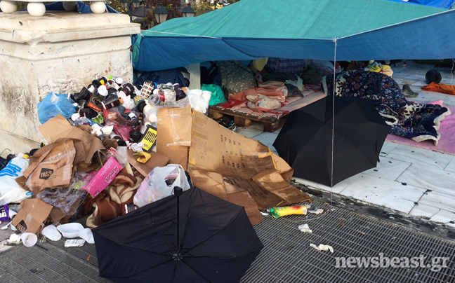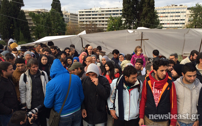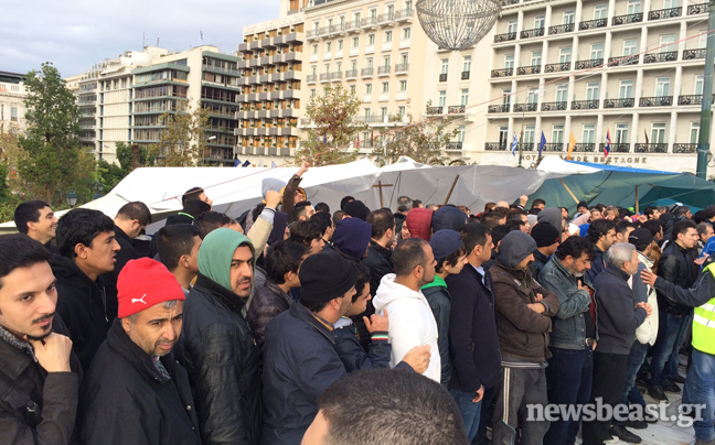 Διαμαρτυρία βρίσκεται σε εξέλιξη στην πλατεία Συντάγματος από τους Σύρους απεργούς πείνας για την απόφαση που λήφθηκε να απομακρυνθούν 70 παιδιά και οι γυναίκες που βρίσκονταν στο σημείο και είναι σε άσχημη κατάσταση και να μεταφερθούν σε κέντρα φιλοξενίας προσφύγων.
