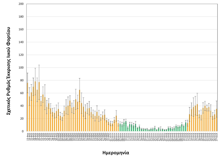 - Σταθερή (+8,4%) σε σχέση με τη μέση τιμή των δύο αμέσως προηγούμενων μετρήσεων του Σαββάτου 24/07 και της Κυριακής 25/07