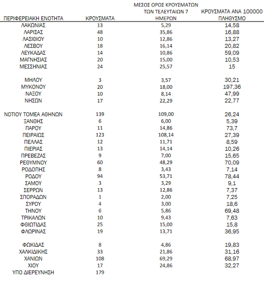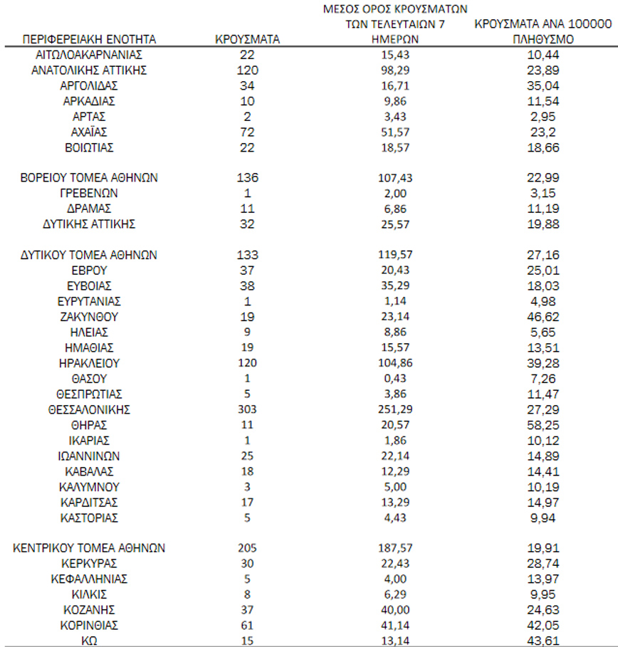 Συγκεκριμένα η Αττική έχει 905 νέα κρούσματα κορονοϊού, ενώ η Θεσσαλονίκη 303.