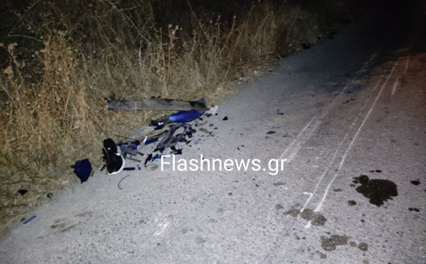 Η σύγκρουση ήταν μετωπική με αποτέλεσμα το μηχανάκι να σφηνώσει κάτω από το μπροστινό τμήμα του αυτοκινήτου και -όπως φαίνεται και από τα ίχνη στον δρόμο- να συρθεί για αρκετά μέτρα. Ο 18χρονος είναι νεκρός.