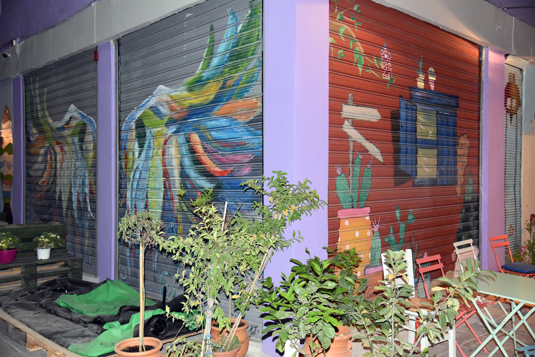 Το καφέ-μπαρ όπου όλοι μιλούν τη γλώσσα της αγάπης και της αλληλοϋποστήριξης διαθέτει ροφήματα για όλα τα γούστα, κάποια πιάτα κυρίως χορτοφαγικά αλλά και ένα μικρό παραδοσιακό παντοπωλείο όπου πωλούνται τοπικά προϊόντα κυρίως μικρών παραγωγών.