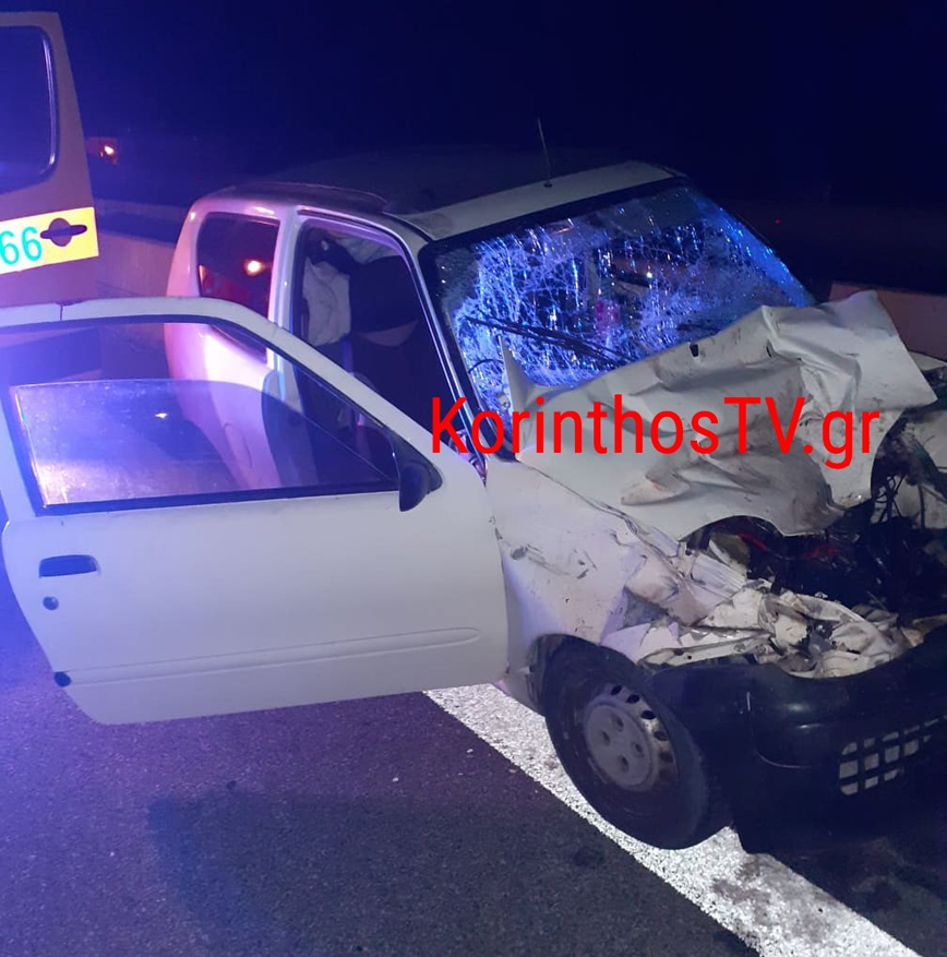 Από τη σύγκρουση τραυματίστηκε ο οδηγός του ΙΧ που με ασθενοφόρο του ΕΚΑΒ μεταφέρθηκε στο Νοσοκομείο Κορίνθου.