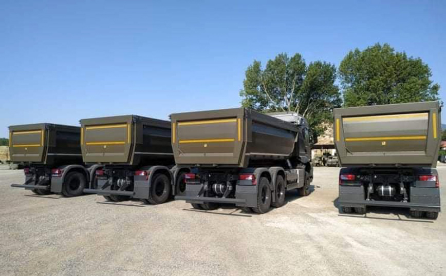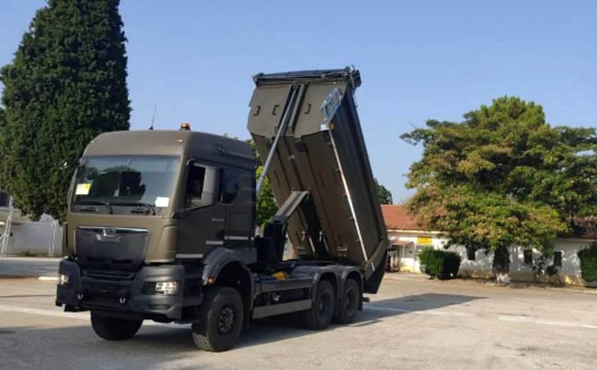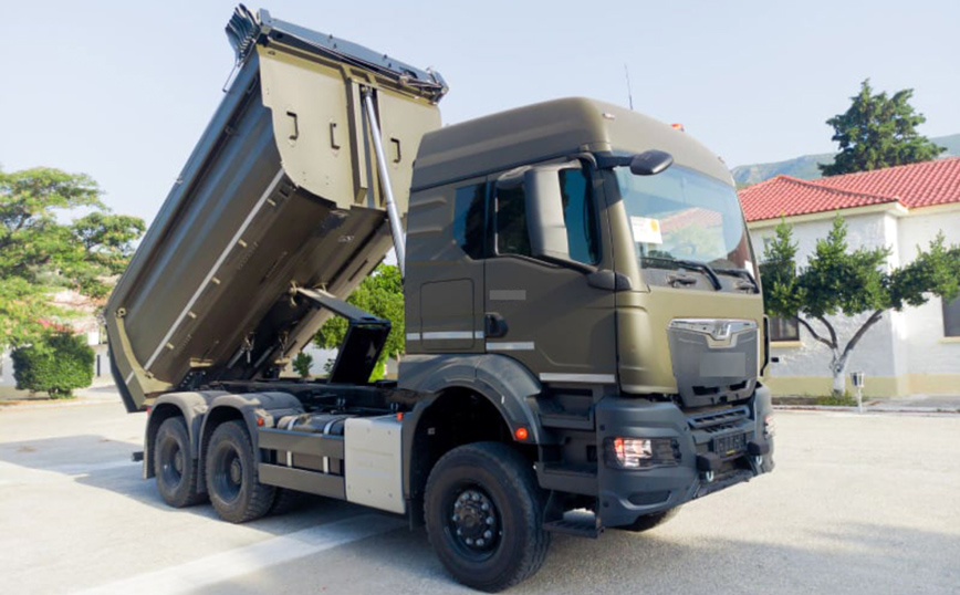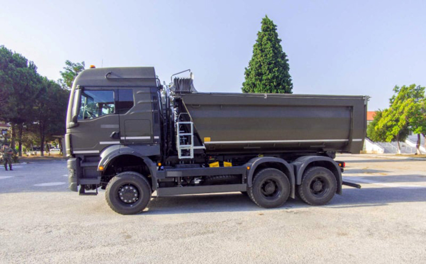 Πέντε καινούργια ανατρεπόμενα οχήματα 6Χ6, μεικτού βάρους 33 τόνων και ωφέλιμου φορτίου 18 τόνων το καθένα, προμηθεύθηκε ο Στρατός Ξηράς, στο πλαίσιο του εν εξελίξει προγράμματος προμήθειας νέων οχημάτων και ανανέωσης του εν λόγω στόλου, καθώς και στο πλαίσιο της διαρκούς προσπάθειας αναβάθμισης των δυνατοτήτων των μέσων του.