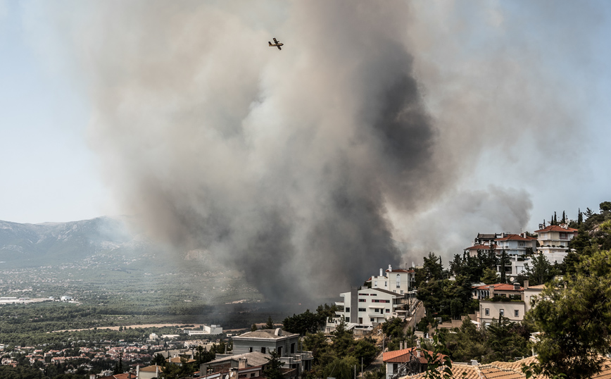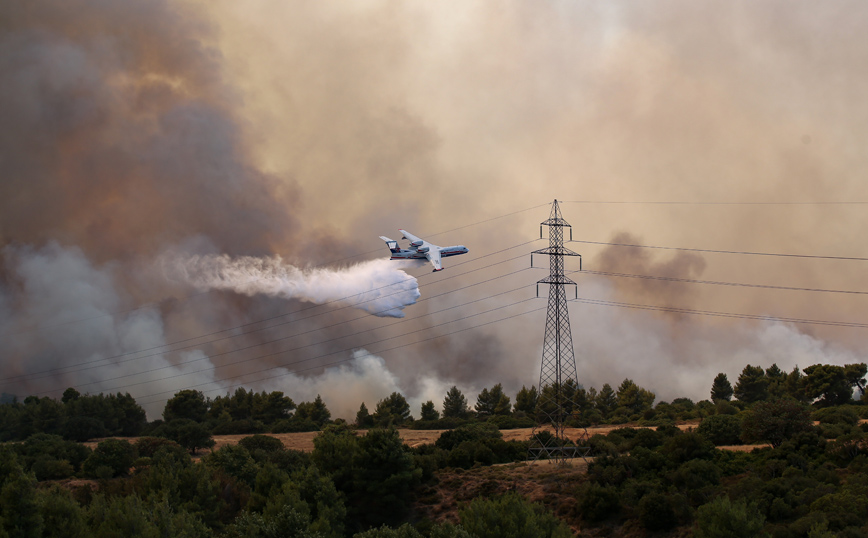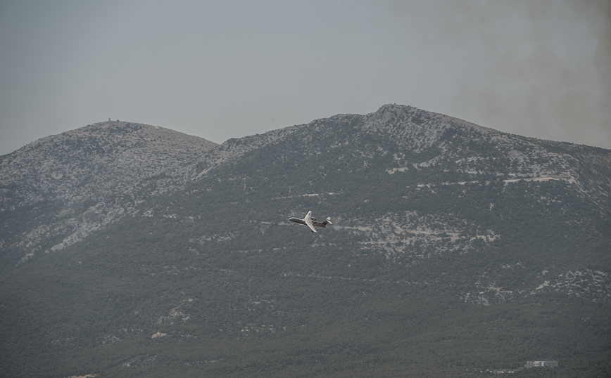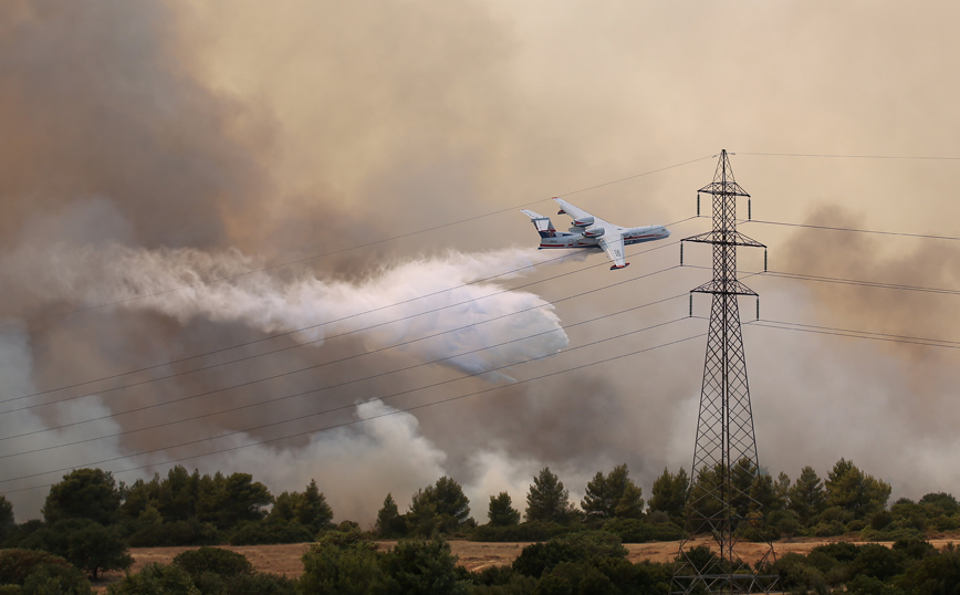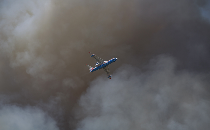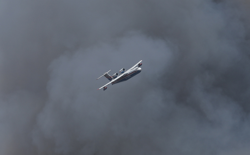 Φωτιά στη Βαρυμπόμπη: Φωτογραφίες από το ρωσικό Beriev-200 και τα υπόλοιπα αεροσκάφη