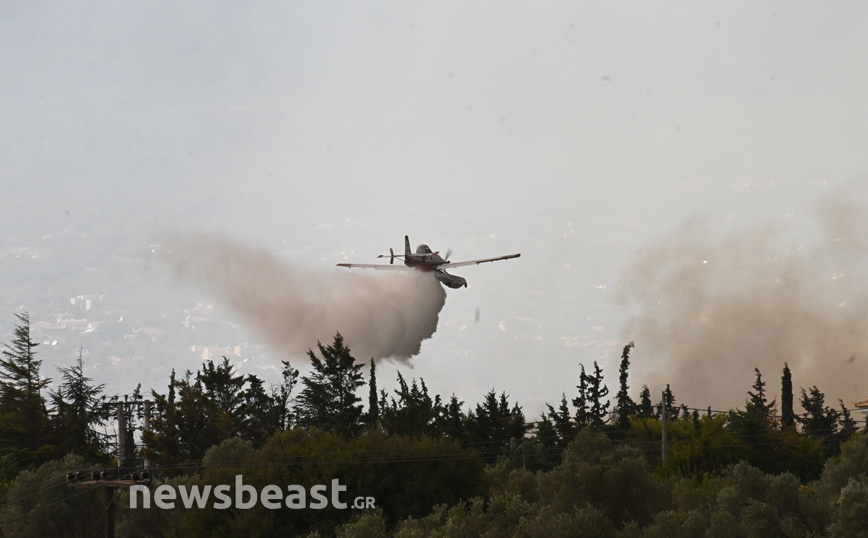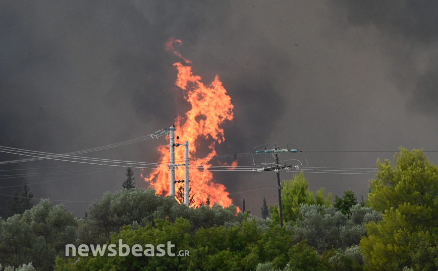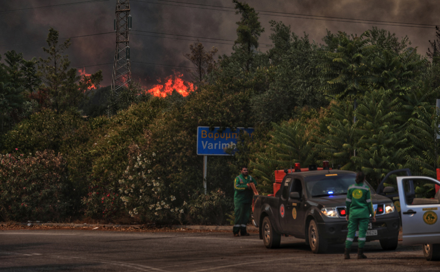 Η φωτιά που ξέσπασε στη Βαρυμπόμπη βρίσκεται εκτός ελέγχου, ενώ οι φλόγες έχουν κάψει σπίτια.