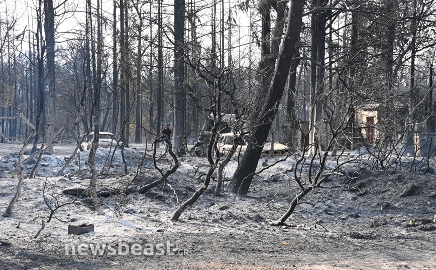 Λίγα μέτρα παρακάτω, δύο αδελφές στέκονται στη μέση του ολοσχερώς καμμένου οικοπέδου και σπιτιού τους μερικά μέτρα πριν την πλατεία Βαρυμπόμπης. «Δεν έμεινε τίποτα.Έμπα μέσα να δεις. Όχι σπίτι δεν φαίνεται, ούτε κρεβάτι, ούτε σαλόνι, τίποτα» λέει η Νικολέτα και συνεχίζει «έμενα εδώ με τους γονείς μου και τον αδελφό μου. Ένα πυροσβεστικό δεν ήλθε. Κάηκε και το σπίτι του γείτονα μου δίπλα. Μόνο πάνω από τα μεγάλα κτήματα κάνανε ρίψεις. Κάηκε όλος μας ο βιος και ένα πυροσβεστικό όχημα δεν πέρασε».