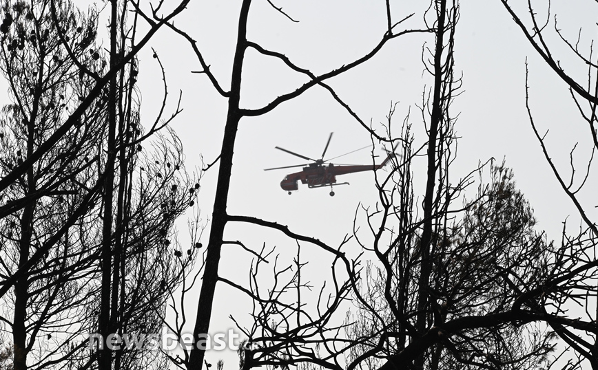 Όπως συνεχίζει να μας λέει: «Τα παιδιά μου 12 και 15 χρονών ήταν μόνα τους στο σπίτι εκείνη την ώρα. Πήραν τα σκυλιά μας κι έφυγαν», μας διηγείται κλαίγοντας κι αμέσως μετά ανακουφισμένος που βλέπει το δικό του σπίτι άθικτο από τις φωτιές.