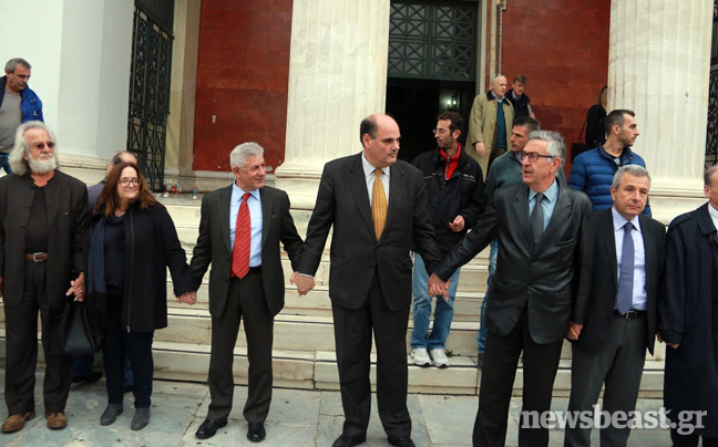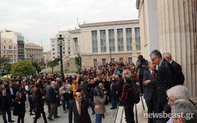 Μια ανθρώπινη αλυσίδα γύρω από το Εθνικό Και Καποδιστριακό Πανεπιστήμιο Αθηνών δημιούργησαν σήμερα όσοι ανταποκρίθηκαν στο κάλεσμα των πρυτανικών αρχών του Ιδρύματος για μια εκδήλωση έντονης συλλογικής διαμαρτυρίας στα Προπύλαια.