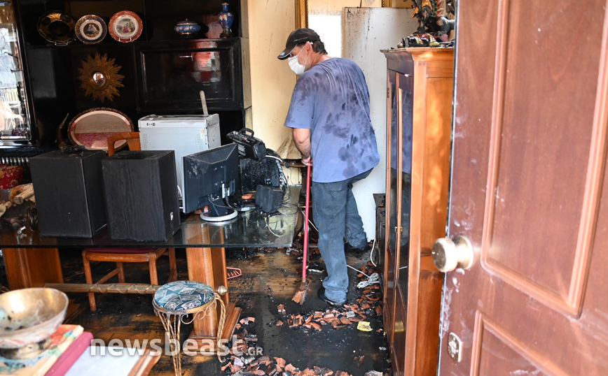 Συγκλονιστική είναι και η μαρτυρία της Δήμητρας Σιμιανοπούλου της οποίας το σπίτι κάηκε κατά το ήμισυ σήμερα το πρωί. Τη συναντήσαμε μέσα στην αυλή του σπιτιού της μαζί με τον άντρα της, να σκουπίζουν τα αποκαΐδια, παρουσία ακόμα των πυροσβεστών που έσβηναν τις τελευταίες εστίες μέσα στο σπίτι της.