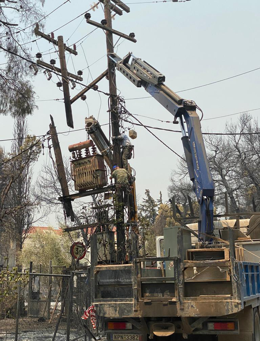 Στη Βαρυμπόμπη συνεργεία του ΔΕΔΔΗΕ εργάζονται από το πρωί για την αποκατάσταση γραμμής μέσης τάσης που τροφοδοτεί την περιοχή, ενώ στην Εύβοια χωρίς ρεύμα παραμένουν τέσσερις οικισμοί, επίσης εξαιτίας της πυρκαγιάς στην περιοχή.