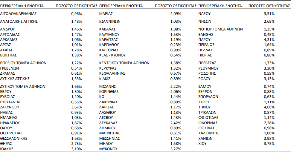 Τα υψηλότερο ποσοστό θετικότητας εντοπίζεται σε: