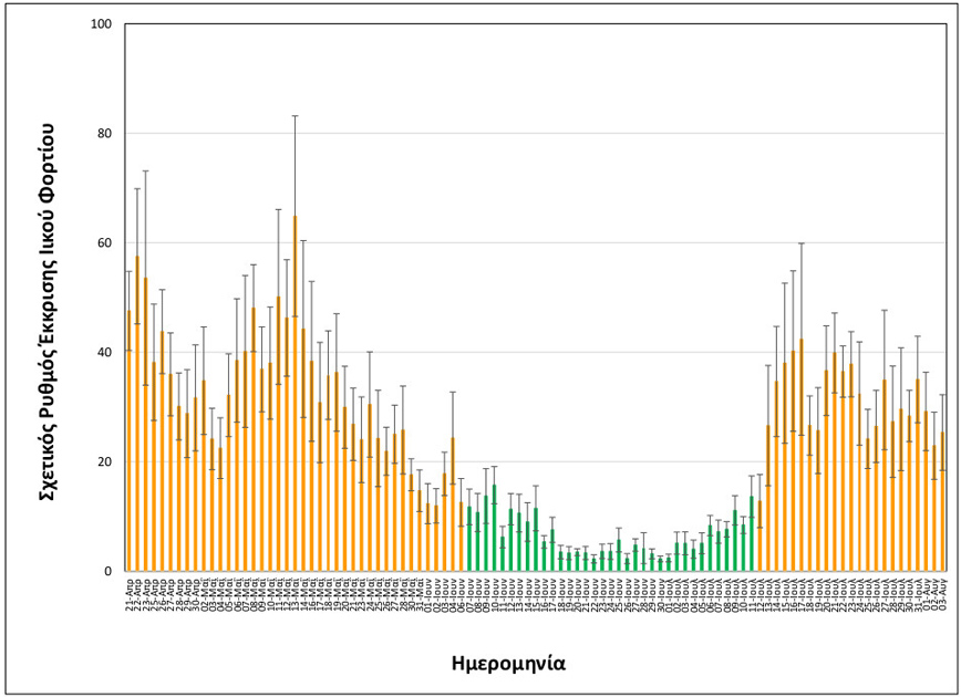 - Οριακά σταθερή (-25%), σε σχέση με τη μέση τιμή των δύο αμέσως προηγούμενων μετρήσεων του Σαββάτου 31/07 και της Κυριακής 01/08