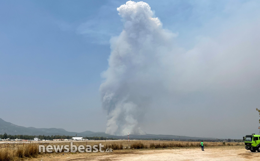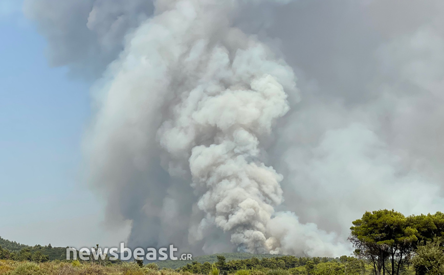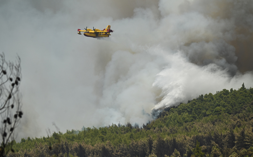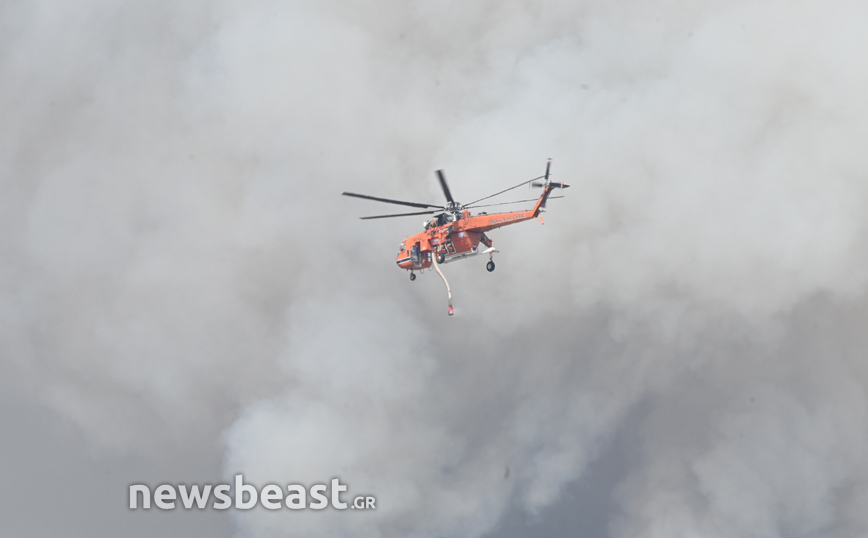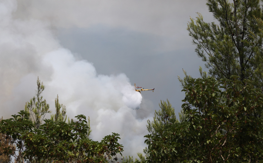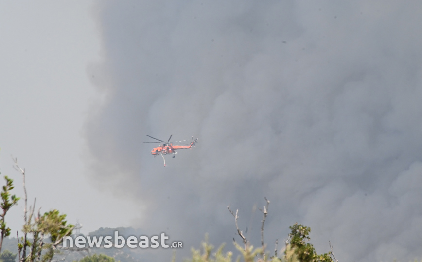 Για την κατάσβεση της φωτιάς επιχειρούν εκτός από επίγεια μέσα και εναέριες δυνάμεις.