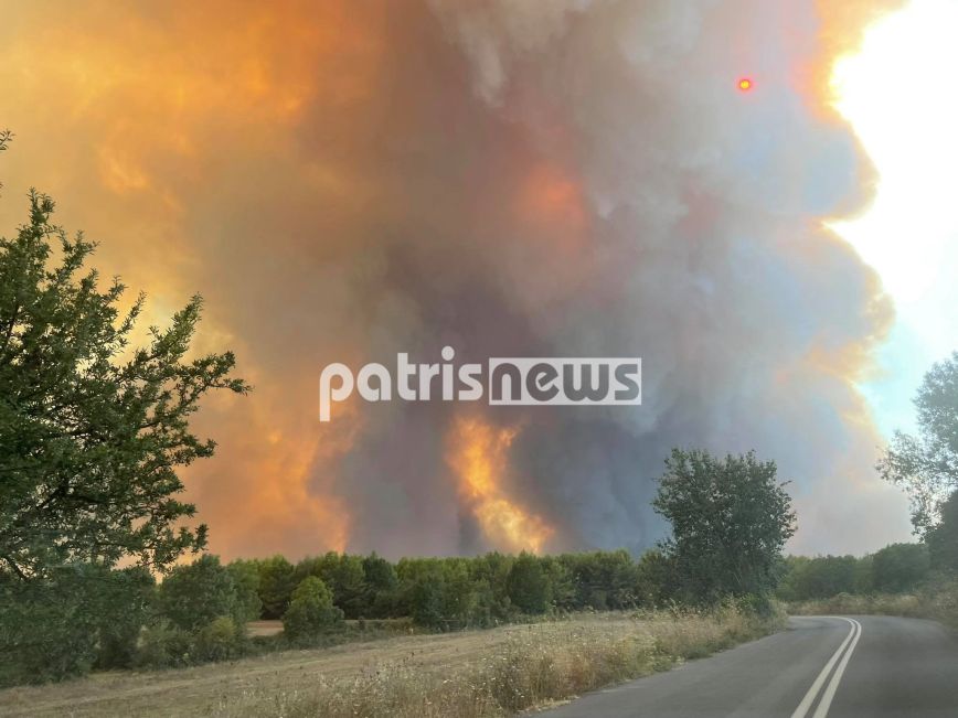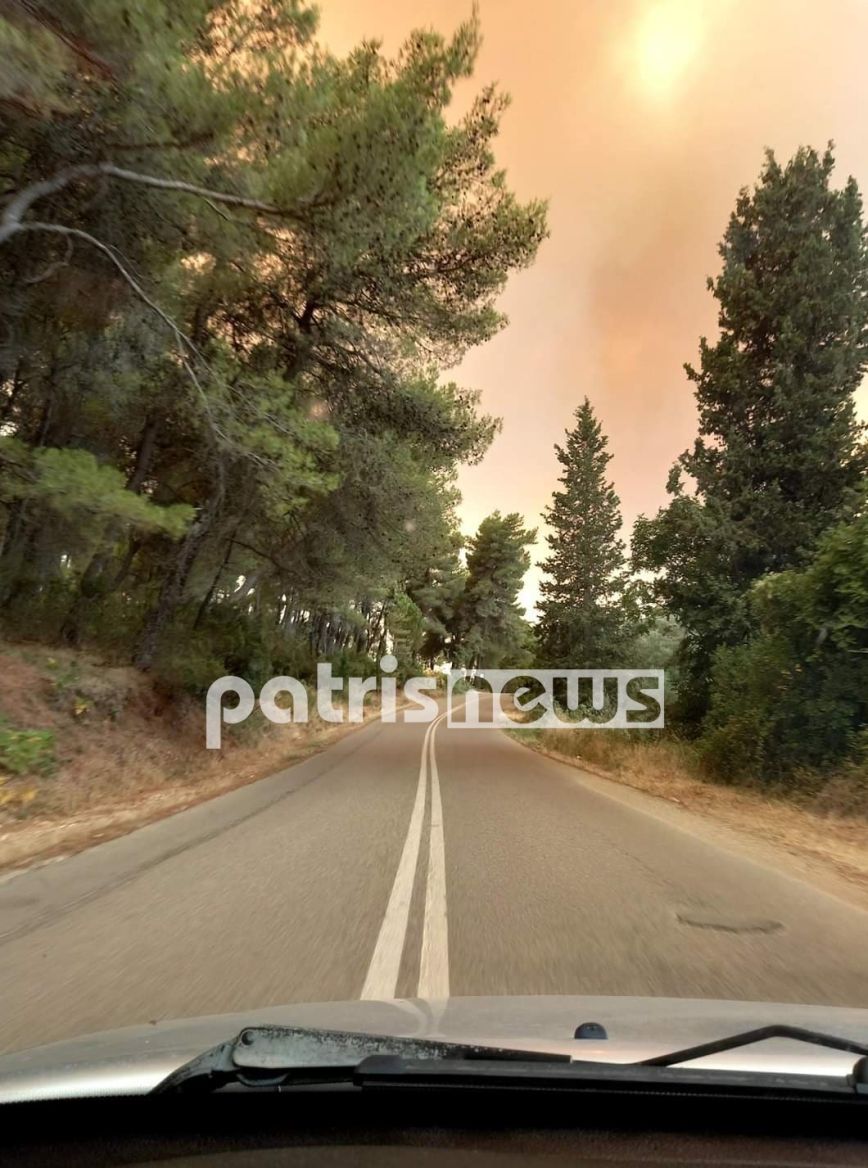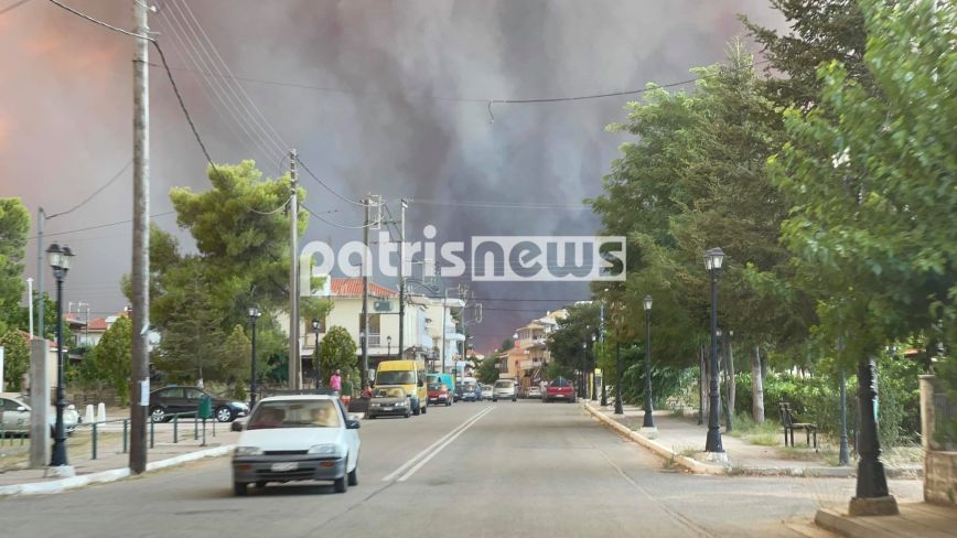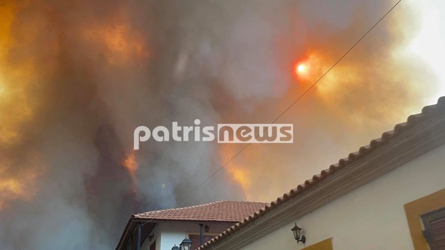 Το χωριό, όπως αναφέρει το patrisnews.com πλέον βρίσκεται υπό ξεκάθαρη απειλή, καθώς όπως φαίνεται και στις εικόνες, η φωτιά έχει περικυκλώσει την περιοχή, ενώ στις φλόγες έχουν τυλιχθεί σπίτια και επιχειρήσεις.